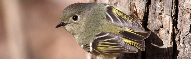 You've been sitting quietly in an old field among some hawthorn bushes and small sumacs. A small yellow bird lands on a branch nearby, throws back its head and sings. The first note is a whistle, but the second note sounds more like and insect call than a bird song. After about a minute the bird repeats the two notes. A second bird that looks exactly like the first appears, carrying some dead insects, and flies down to a clump of grass nearby. Just before it disappears among the grasses you notice the black line through its eye. What kind of bird are they?